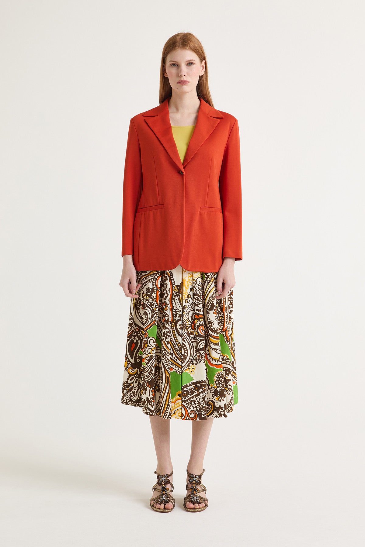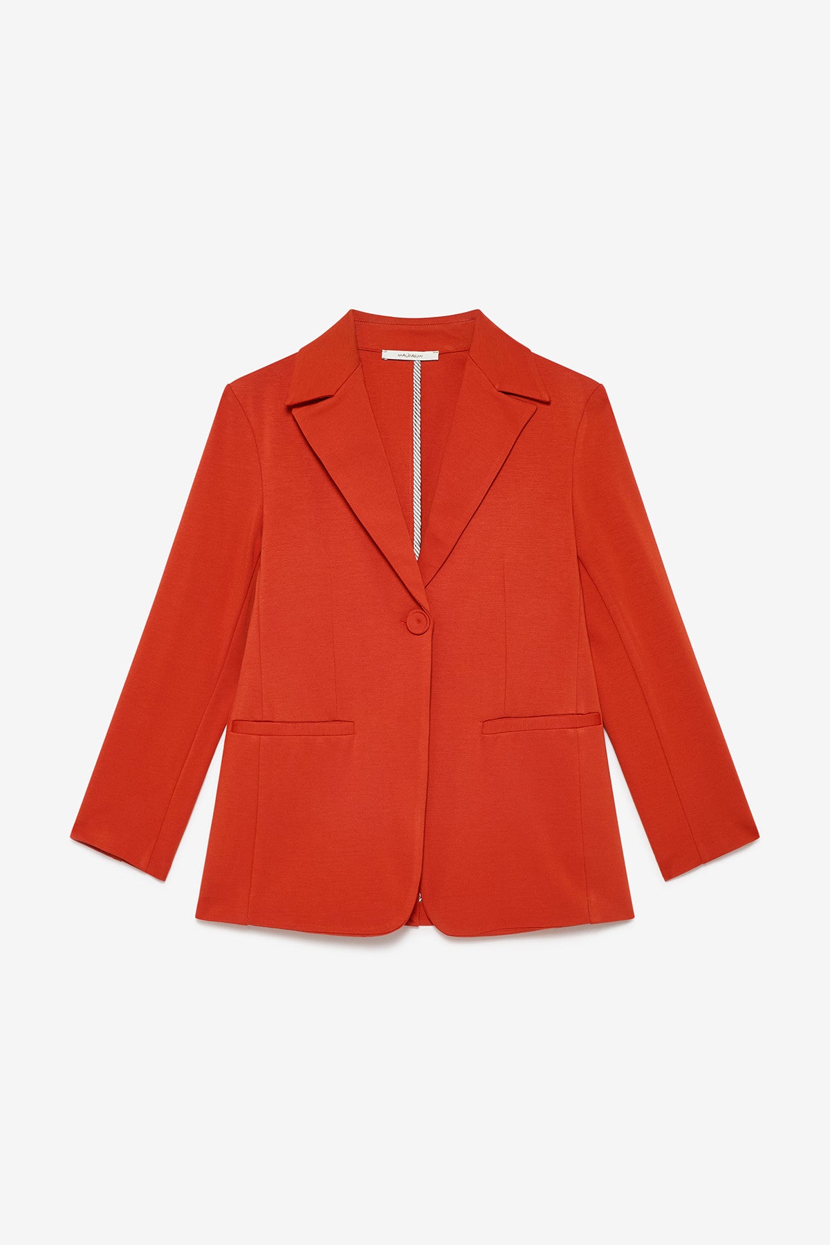 Casaco de gola e virado, com bolsos embutidos com pormenor de debrum em tecido.