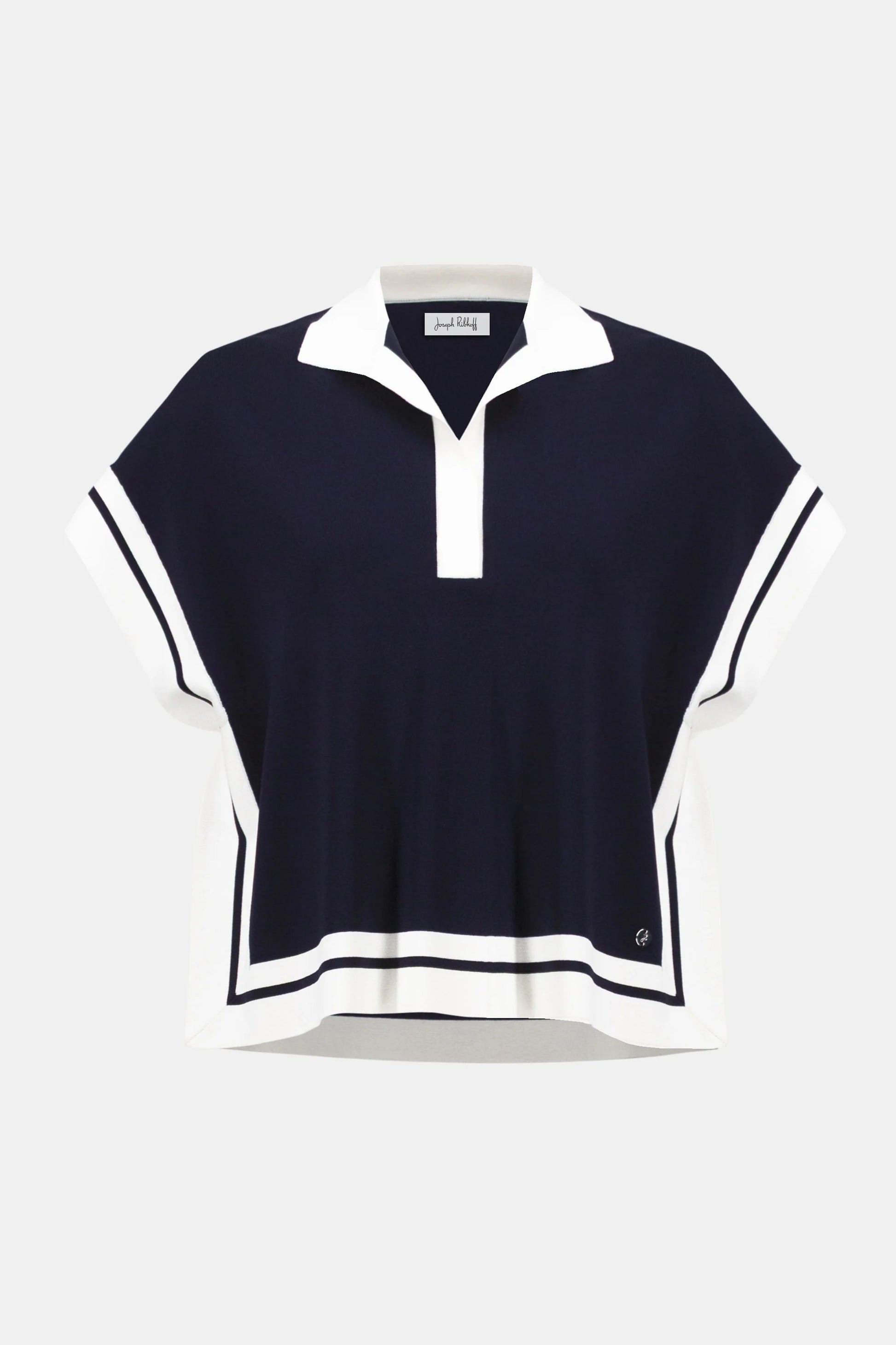 Malha over,manga curta, decote polo.