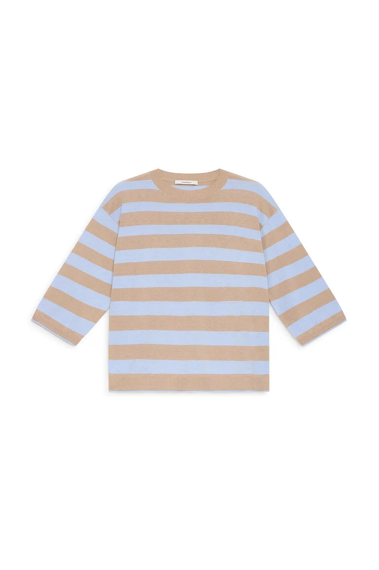 Malha de corte fluído, decote redondo e mangas 3/4.
