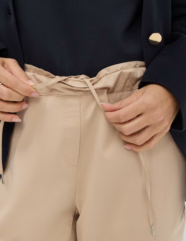 Calça chino intemporais, com corte cônico, cintura alta e perna afunilada.