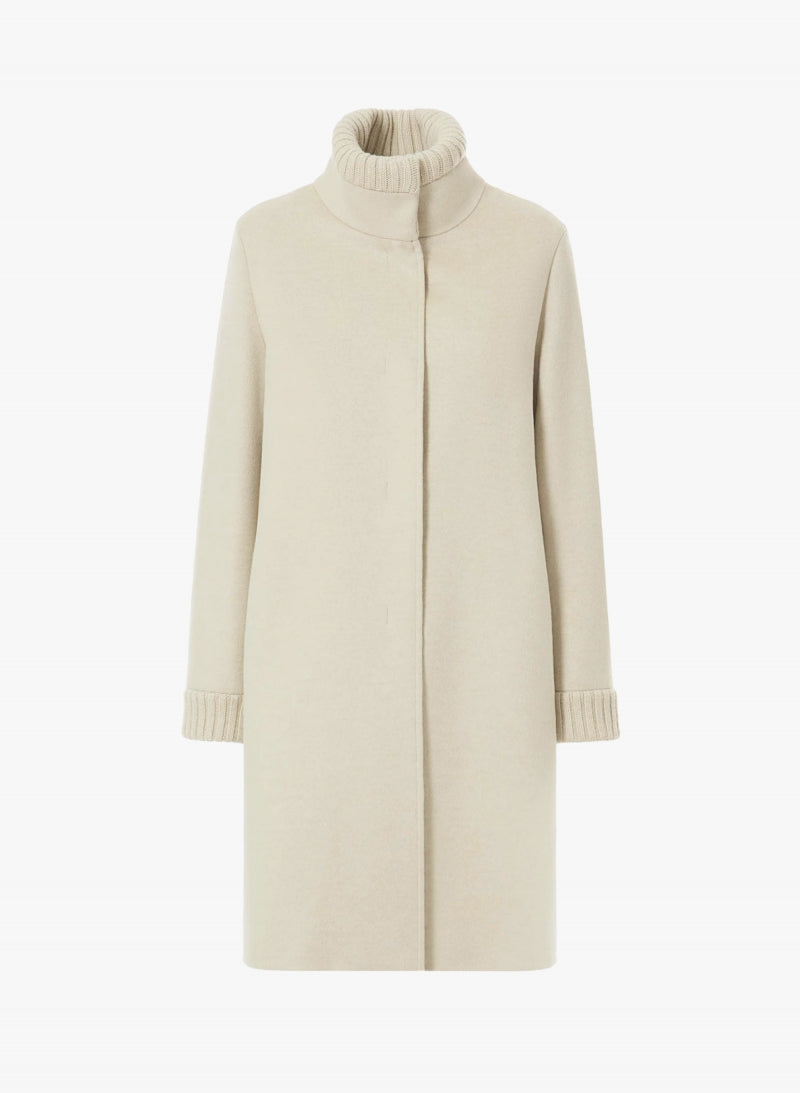 Casaco em lã zibeline pura, com aplicações em malha.