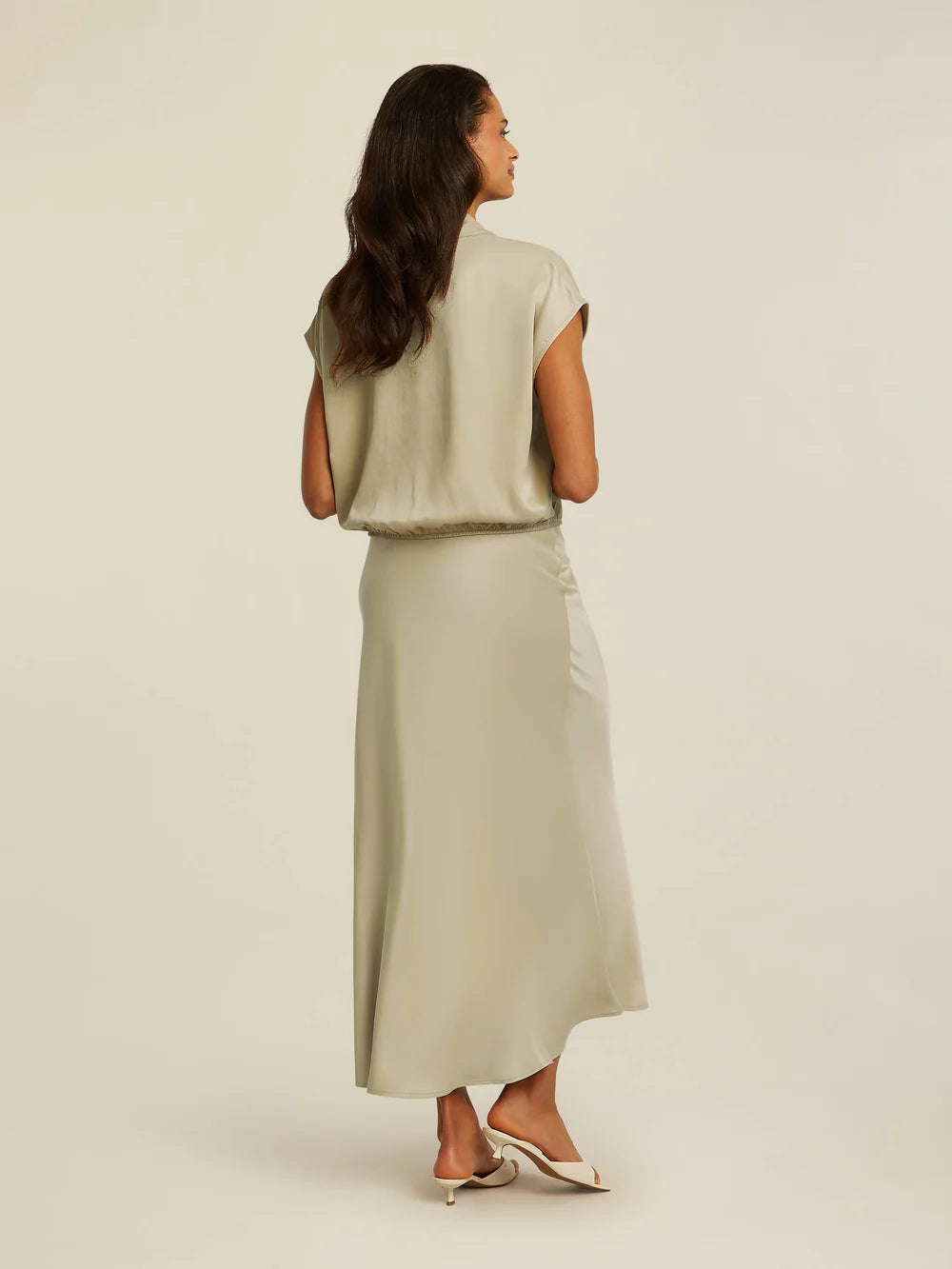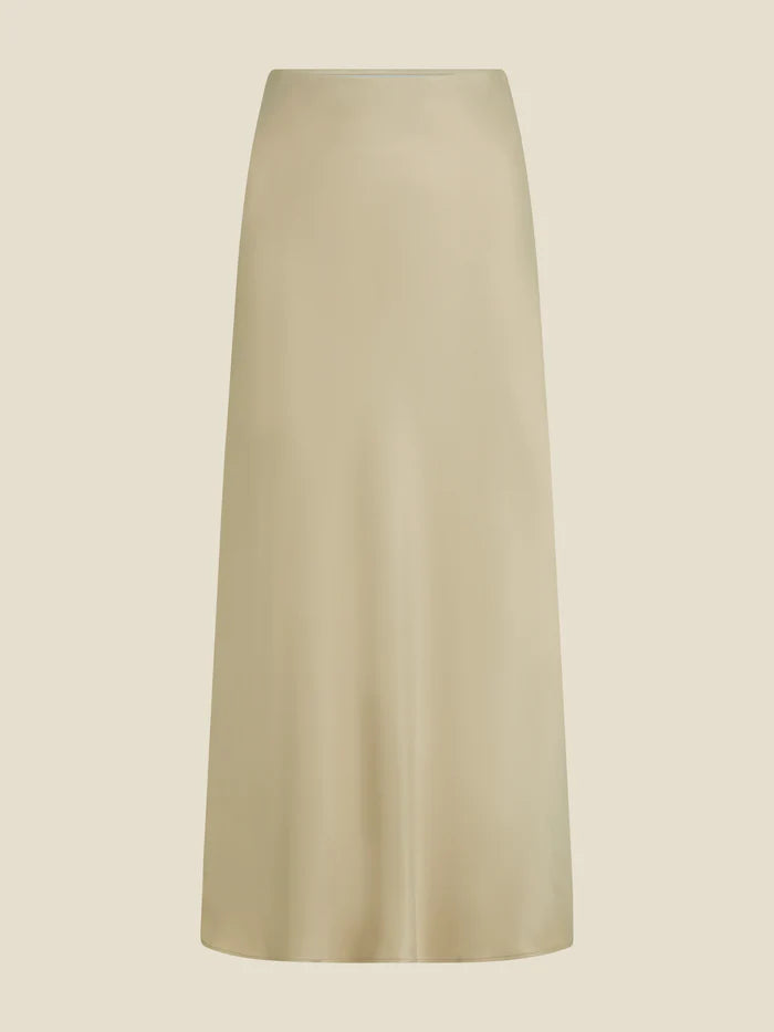 Saia comprida em cetim basso, cós em elástico com logotipo.