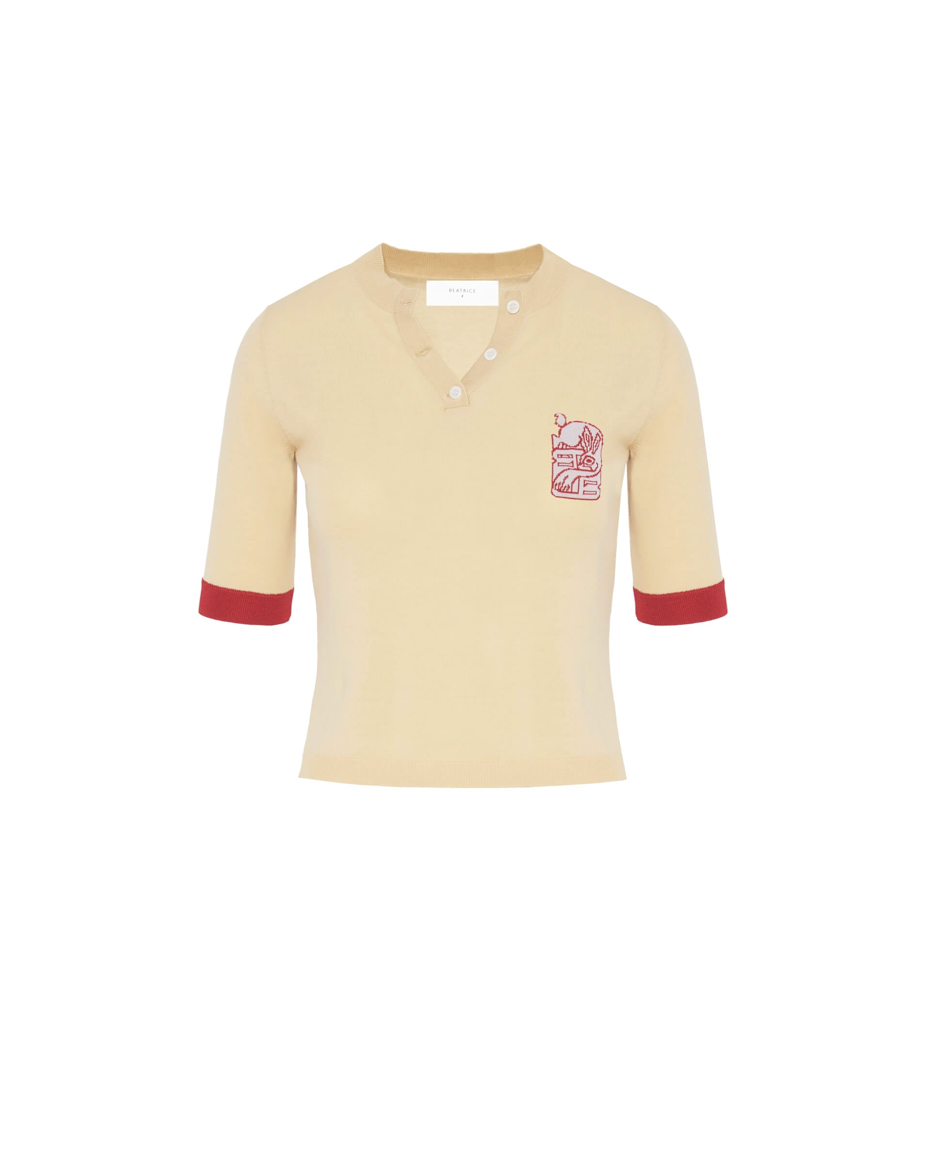 T-Shirt com gola de polo e manga curta com pormenor de cor na manga.